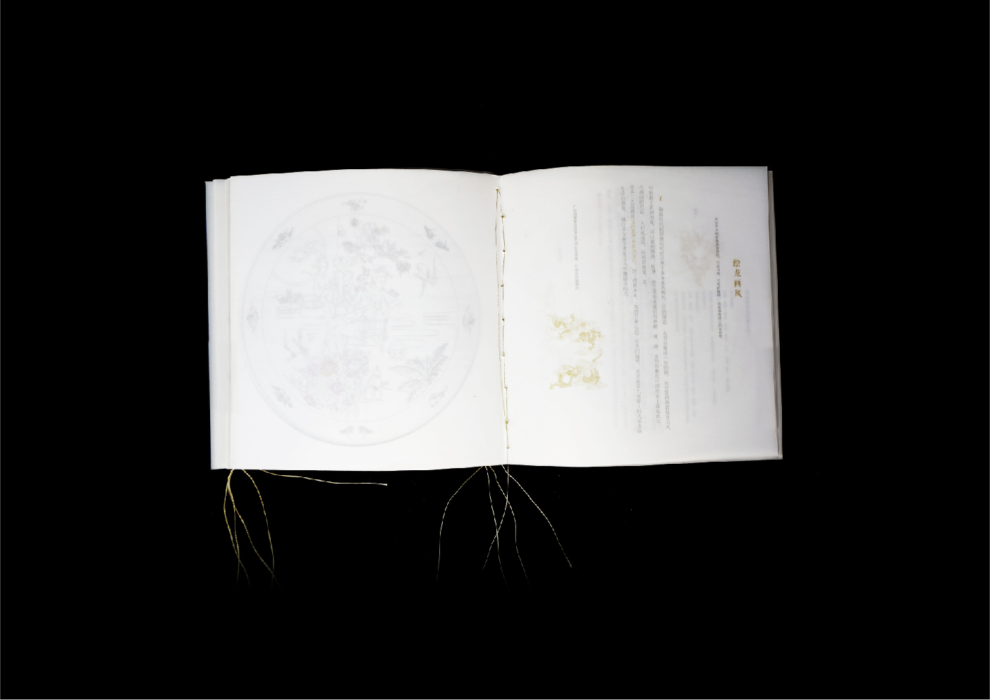 ulfuric paper forms the body, representing the delicate craftsmanship; The gold thread weaves the book cover and body together, representing the artifact. From material to content, the whole book echoes the name “Golden Silk White Jade · Weaving”.